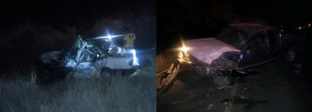 PABELLÓN DE ARTEAGA, AGS.- Saldo de dos muertos y dos lesionados fue el que dejó un choque frontal entre una camioneta y un taxi en esta cabecera municipal.
