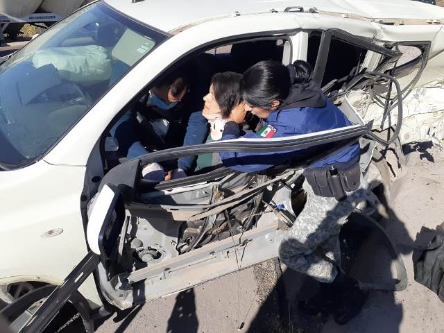 Ante esto, realizaron las maniobras necesarias para rescatarla, ya que las puertas estaban atoradas, colocándole un collarín, una solución intravenosa y un chaleco de extracción rápida.