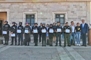 Tras reconocer su compromiso y exhortarlos a continuar trabajando por el bienestar y la seguridad de los jesusmarienses, el presidente municipal Antonio Arámbula López entregó los reconocimientos a los 9 elementos que aprobaron el curso, así como al instructor José de Jesús Pedroza Macías, quien está avalado como instructor internacional.
