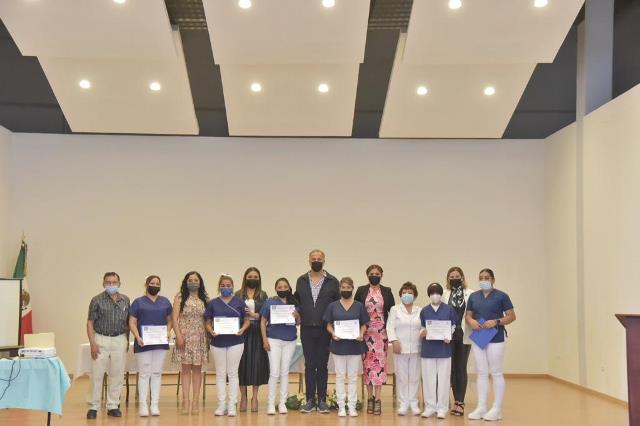 JESÚS MARÍA, AGS.- Concluyó en Jesús María el primer curso de primeros auxilios, dirigido a auxiliares de enfermería y del cual el presidente municipal entregó las constancias de participación.