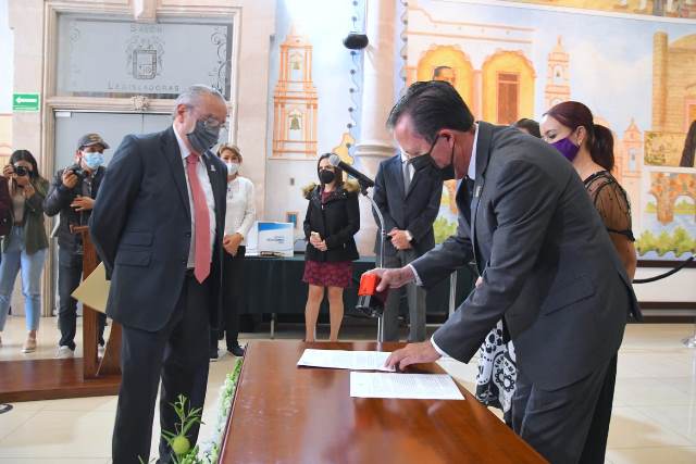 AGUASCALIENTES, AGS.- Con una propuesta de incremento presupuestal de 900 millones de pesos para el 2022 con respecto al que se ejerce en el presente año (24,523 millones de pesos), el presidente de la mesa directiva de la LXV Legislatura, diputado Raúl Silva Perezchica, recibió el Proyecto de Ley de Ingresos y Presupuesto de Egresos de Gobierno del Estado, que formuló el Secretario de Finanzas (SEFI), Carlos de Jesús García Magallanes.
