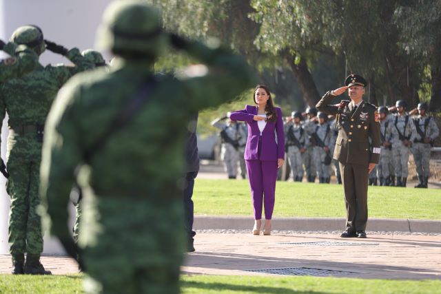 Asimismo, la gobernadora precisó que el lábaro patrio es el brazo que nos ha levantado y unido en momentos difíciles y que llama a construir una nación más justa y solidaria.