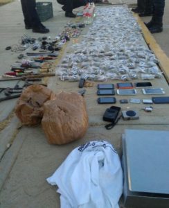También 493 bolsitas y otras 23 de diverso tamaño con marihuana, una manta de vinil, sogas elaboradas con cobijas, 12 teléfonos celulares y pipetas, entre otros objetos.