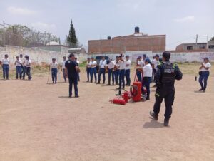Los futuros elementos realizan prácticas especializadas en técnicas de detención y control, así como ejercicios relacionados con protección civil y el uso adecuado de extintores, fortaleciendo así su preparación para actuar con eficacia ante diferentes situaciones de emergencia.