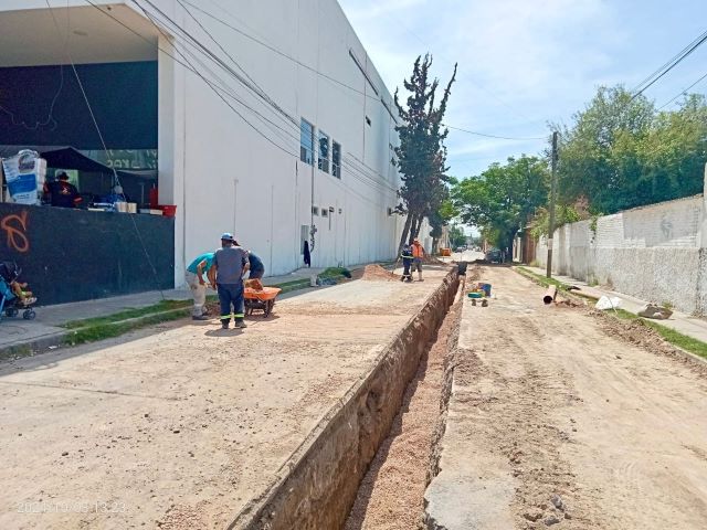 - En esta ocasión se trabaja en la calle Benjamín de la Mora, en el fraccionamiento Olivares Santana, para mejorar la conducción de aguas residuales