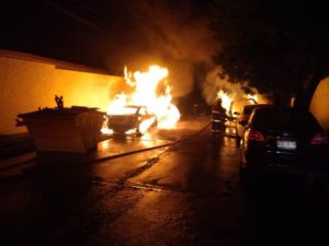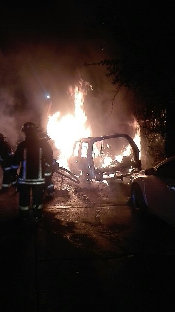 AGUASCALIENTES, AGS.- Al parecer de manera intencional, cuatro vehículos fueron incendiados en el fraccionamiento Colinas del Río.