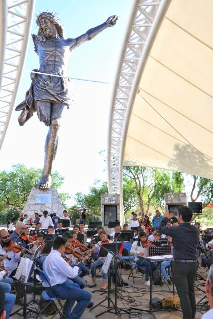 JESÚS MARÍA, AGS.- La Orquesta Sinfónica de Jesús María del turno matutino debutó en el municipio de San José de Gracia al presentarse con su primer concierto en el Santuario de Cristo Roto.