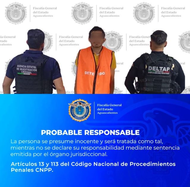 AGUASCALIENTES, AGS.- La Fiscalía General del Estado de Aguascalientes, tras la exposición de datos de prueba por parte del agente del Ministerio Público, un juez de Control decretó la vinculación a proceso en contra de José de Jesús “N”, señalado por su probable participación en el delito de robo calificado.