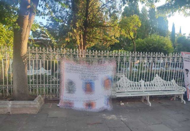 Mientras tanto, dos mantas más fueron colocadas en el barandal alrededor del jardín de la Plaza principal de la zona Centro, frente a la Presidencia Municipal de Jerez.