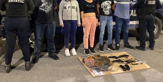 Las fuerzas de seguridad repelieron el ataque y lograron asegurar a una mujer y dos hombres menores de edad, así como a dos adultos identificados como Juan Manuel “N”, de 24 años de edad, y Sarahí “N”, de 25 años, todos originarios de Zacatecas, y quienes señalaron ser integrantes de un grupo delictivo.