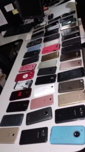 En ese momento los oficiales intervinieron e ingresaron a la habitación, en donde aseguraron casi 100 teléfonos celulares de diversas marcas y colores, así como decenas de chips, los cuales se encontraban en el interior de dos bolsas, una de ellas que se encontraba escondida abajo del tocador y otra sobre un muro localizado del lado izquierdo de la cama.