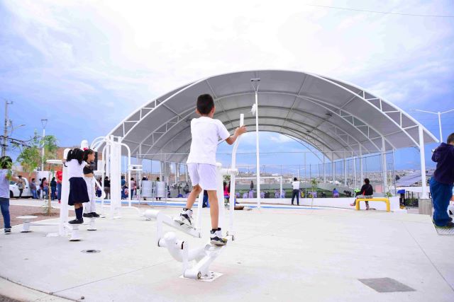 Destaca la construcción y rehabilitación de parques y espacios educativos, así como la construcción y mantenimiento de centros culturales y deportivos, lo cual representa una inversión de 46 millones de pesos para el fortalecimiento de espacios de recreación y aprendizaje de las niñas, niños y jóvenes.