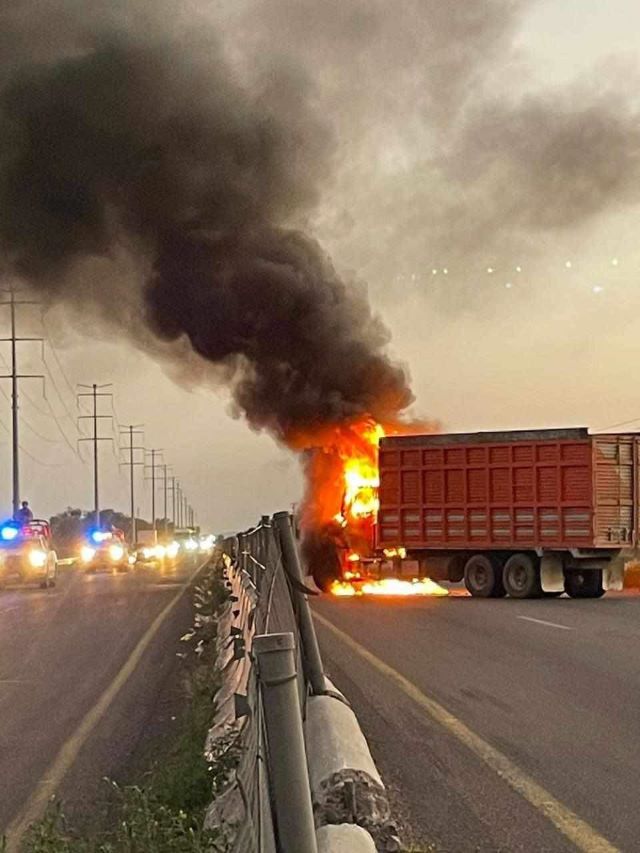 Al mismo tiempo fue incendiado otro tráiler sobre la misma Panamericana Norte, pero a la altura de la comunidad La Punta, en el municipio de Cosío.