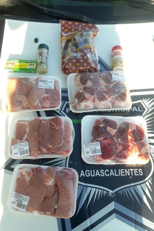 En atención al reporte, oficiales intervinieron en el establecimiento, abordado a la persona cuando se disponía a salir del sitio; al solicitarle una revisión preventiva, la joven mujer fue encontrada en posesión de productos varios propiedad de la tienda, tratándose principalmente de paquetes de carne y sazonadores.