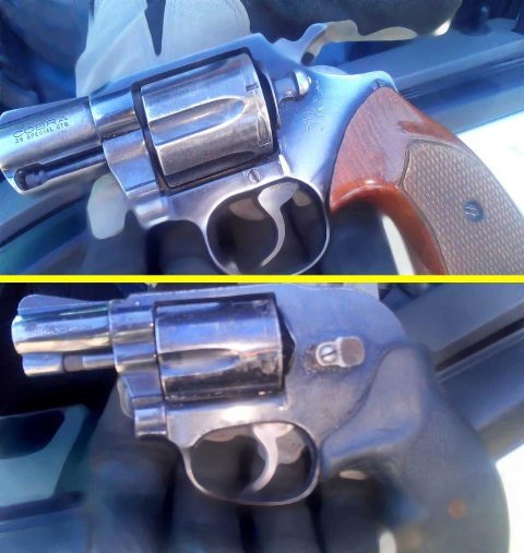 A César y Luis Miguel les aseguraron dos armas de fuego cortas tipo revólver, calibre .38 especial.