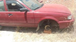 Los hechos se registraron el lunes 9 de abril, alrededor de las 12:30 horas, cuando uniformados del Destacamento Insurgentes de la Policía Municipal detectaron en un predio baldío a los tres sujetos que se encontraban retirando las partes de un vehículo Nissan Tsuru, en color rojo, al que ya le habían quitado las llantas delanteras.