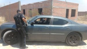 Además, del Nissan Tsuru rojo, los efectivos localizaron y aseguraron un auto Charger, en color oscuro y con placas de circulación FGV2376 de Texas, Estados Unidos, al parecer también robado.