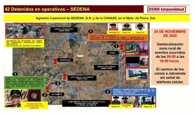 “Durante este mismo operativo se aseguraron vehículos involucrados, hubo las detenciones ya referidas, hubo el aseguramiento de droga y ya fueron vinculados a proceso varios de los perpetradores”.