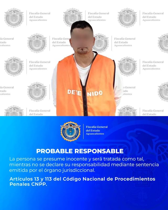 Posteriormente, Jaime “N” fue trasladado a las instalaciones de la Fiscalía Estatal para realizar los trámites correspondientes y, finalmente, ingresado al Centro Penitenciario Estatal de Aguascalientes, donde quedó a disposición de la autoridad judicial.