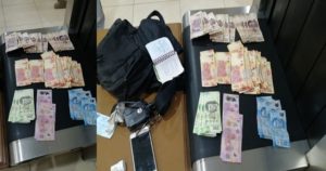 Al revisarlos, a Julio César le descubrieron un arma de fuego tipo escuadra, calibre .22 con un cargador con 9 cartuchos útiles y uno más en la recámara, así como 11 mil 283 pesos en billetes y monedas de diferentes denominaciones.
