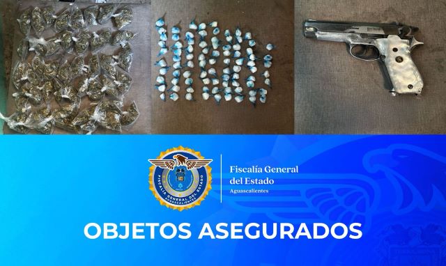- Además, se aseguraron envoltorios con drogas y un arma de fuego