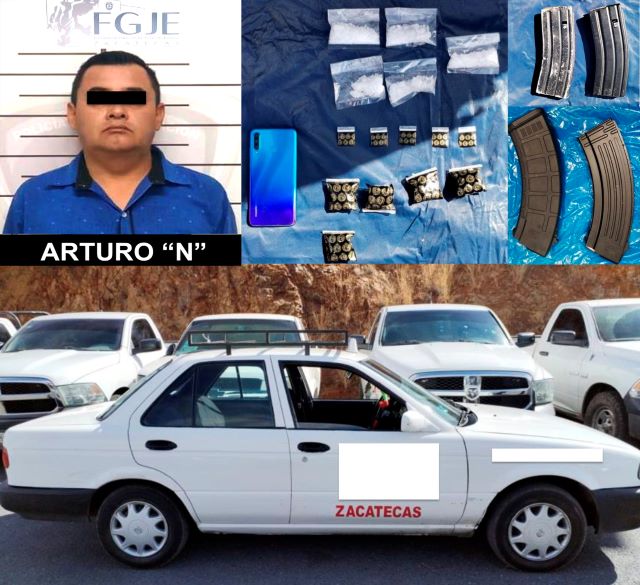 ZACATECAS, ZAC.- Elementos de la Policía Estatal realizaron la detención de Arturo “N” por presunto narcomenudeo y portación de cartuchos y cargadores de uso exclusivo del Ejército.
