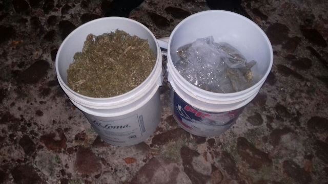 CALVILLO, AGS.- Un sexagenario que se dedicaba al tráfico de drogas en Calvillo, fue detenido por policías municipales y estatales, que le aseguraron un par de cubetas con 5 kilos de marihuana.
