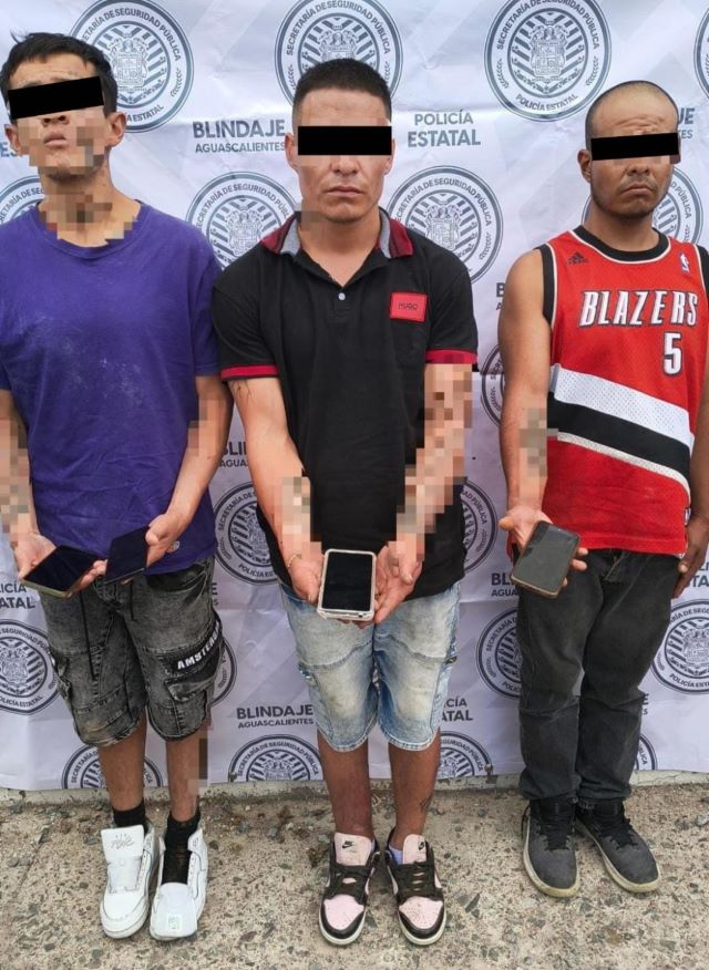 Por lo anterior, los oficiales de la Policía Estatal procedieron al aseguramiento de los tres individuos para ponerlos a disposición, junto con los teléfonos celulares recuperados y las armas blancas que les fueron localizadas entre sus pertenencias, ante el agente del Ministerio Público del fuero común en turno en la Fiscalía General del Estado de Aguascalientes.