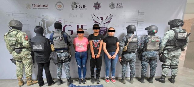 Las personas detenidas fueron identificadas como Lucero Yazmín “N”, de 26 años de edad; Sol Jaqueline “N”, de 19 años, y José Alejandro “N”, de 23 años.