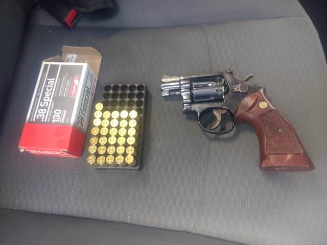 Fue así que los oficiales se aproximaron al individuo señalado y al realizarle una inspección corporal encontraron entre sus prendas un arma de fuego tipo revólver en color negro con cachas en color café, la cual estaba abastecida con 6 cartuchos, cuatro útiles y dos percutidos, calibre .38 especial.