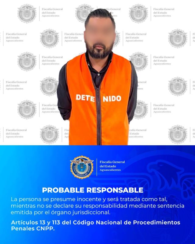 Derivado de las indagatorias, se emitió una orden de aprehensión en contra de Carlos Alberto “N”, la cual fue cumplimentada por agentes investigadores en la calle Aves del fraccionamiento Municipio Libre, en la ciudad de Aguascalientes.