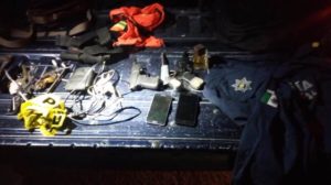 Los dos sujetos fueron asegurados y al revisar el auto de alquiler, los elementos encontraron y decomisaron tres pistolas hechizas calibre .22, dos radios de frecuencia corta marca Motorola, un pasamontañas, unas cizallas, herramienta varia, un chaleco fluorescente, una camisola de la Policía Municipal de Tonalá en color azul y uniformes de la Comisión Federal de Electricidad (CFE), objetos que aparentemente utilizaban para cometer ilícitos.