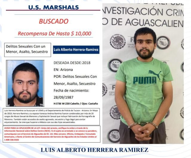 Agentes ministeriales de la Unidad Especializada en Combate al Secuestro de la Fiscalía General del Estado, en colaboración con la INTERPOL (Organización International de Policía Criminal o Policía Internacional) y la Agencia Federal de Policías de Estados Unidos, conocida como US Marshals, llevaron a cabo el arresto de Luis Alberto Herrera Ramírez y Andrea Vanessa Ramírez.