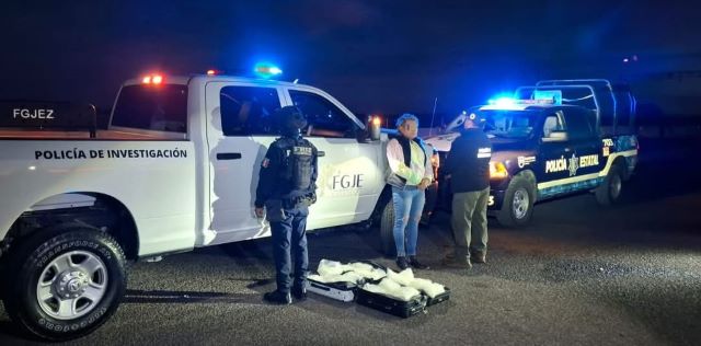 La acción coordinada se llevó a cabo en las inmediaciones de la UNIRSE Villa de Cos, logrando la detención de Jennifer “N”, quien viajaba en un autobús de pasajeros, el cual tenía como origen el Estado de Michoacán y como destino la ciudad de Monterrey, N.L., transportando dos maletas personales, en las que fueron asegurados diversos paquetes con narcótico, arrojando un peso aproximado de 34 kilogramos.