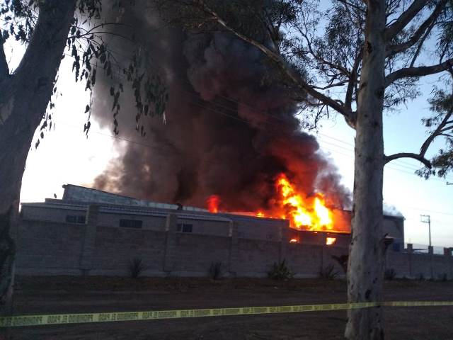 AGUASCALIENTES, AGS.- Un devastador incendio arrasó con una fábrica ubicada al norte del Estado, aunque en una acción coordinada entre integrantes del cuerpo de Bomberos del Estado y bomberos de San Francisco de los Romos, Jesús María y Pabellón de Arteaga así como elementos de Protección Civil del Estado y de San Francisco de los Romo y elementos de la Policía Preventiva de dicha cabecera municipal, fueron sofocadas las llamas que se originaron, en la cual no se registraron personas lesionadas, sin embargo, los daños materiales ascendieron a 15 millones de pesos, aproximadamente.