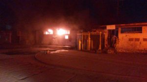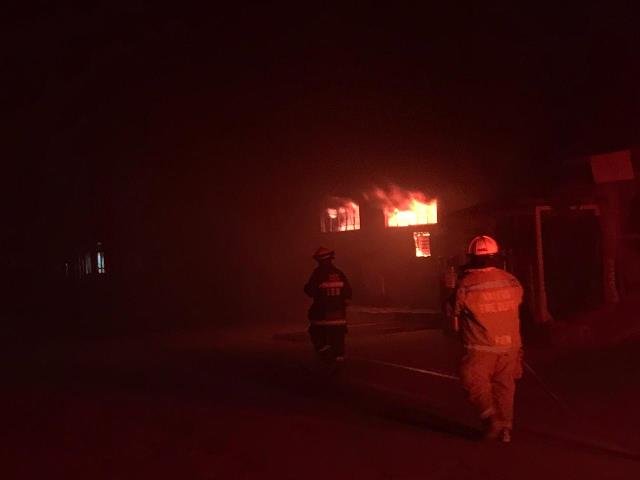 AGUASCALIENTES, AGS.- Elementos del Grupo de Operaciones Aéreas y uniformados del Destacamento Morelos, en coordinación con Bomberos Municipales, atendieron el reporte de un incendio que se registró la noche del martes 28 de enero en una bodega de pinturas con razón social Esmeltek, sin que resultaran personas lesionadas.