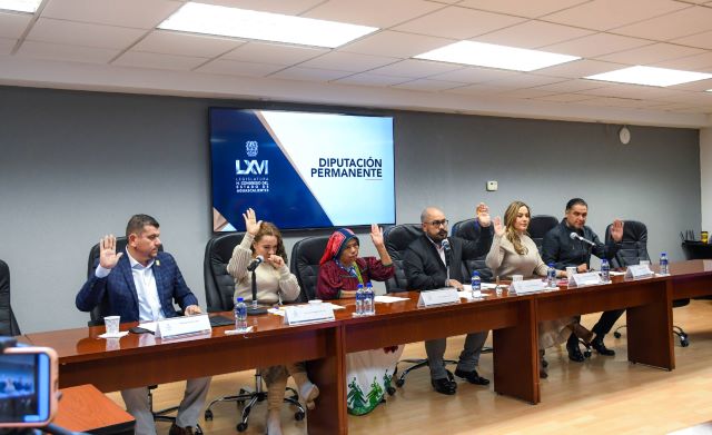 AGUASCALIENTES, AGS.- En la Quinta Sesión Ordinaria de la Diputación Permanente del Congreso de Aguascalientes, el presidente de la Mesa Directiva, diputado José Trinidad Romo Marín, de manera conjunta con las y los integrantes de este órgano legislativo, las diputadas Arlette Muñoz Cervantes, Irma Reza de la Cruz y Laura Ponce Luna, así como los diputados Adán Valdivia López y Emanuelle Sánchez Nájera, desahogaron dos Declaratorias de Validez Constitucional, en términos de lo dispuesto por el artículo 94 de la Constitución Política del Estado de Aguascalientes y la fracción III del artículo 143 de la Ley Orgánica del Poder Legislativo del Estado.