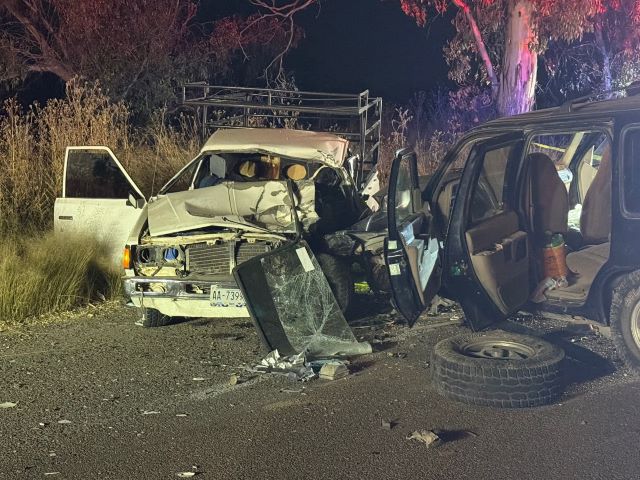 RINCÓN DE ROMOS, AGS.- Dos camionetas chocaron de frente en el kilómetro 21+700 de la carretera estatal 20, que conduce a la comunidad Pabellón de Hidalgo, en el municipio de Rincón de Romos, por lo que el conductor de una de ellas murió y dos personas que le acompañaban resultaron lesionadas.
