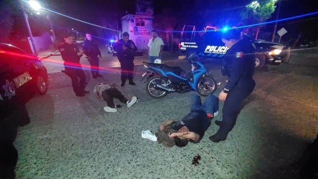 PABELLÓN DE ARTEAGA, AGS.- Elementos de la Policía Estatal atendieron un accidente de motocicleta registrado en la calle Plutarco Elías Calles esquina con Teodoro Olivares, en la colonia Progreso de este municipio, con un saldo de dos lesionados.