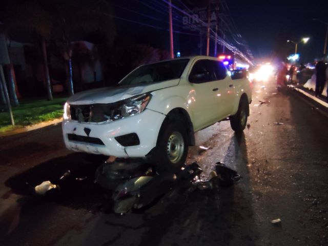 Sin embargo, justo en esos momentos apareció en escena una camioneta Nissan Frontier, en color blanco y con placas de circulación AC-6945-E, conducida por Miguel Ángel González García, de 50 años de edad y con domicilio en el fraccionamiento San Telmo, que arrolló a los dos motociclistas, a Gilberto y a la mujer.
