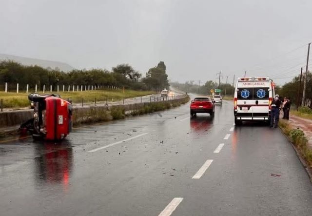 JEREZ DE GARCÍA SALINAS, ZAC.- Dos personas resultaron lesionadas de consideración tras de que sufrieron un accidente tipo choque y posterior volcadura.