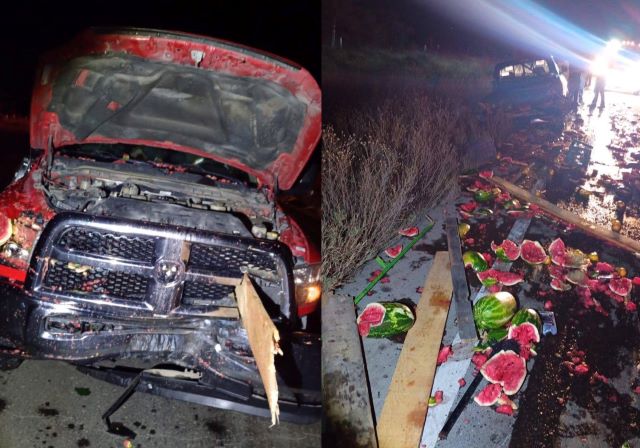 Trascendió que una de las camionetas transportaba sandías, que quedaron regadas sobre la cinta asfáltica tras el choque.