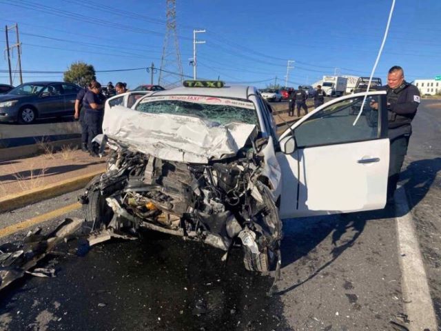 El chofer de una camioneta tipo Pick-Up que se desplazaba a exceso de velocidad perdió el control del volante, lo que provocó que brincara el camellón central e invadiera los carriles contrarios, donde colisionó de frente contra el taxi número económico 557 de Zacatecas.