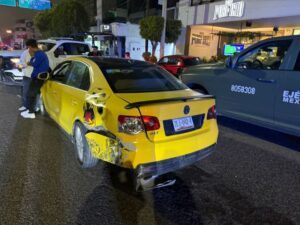 Tras la colisión, el conductor del Ford Focus perdió el control del volante y chocó contra un auto Volkswagen Bora, en color amarillo y con placas ZEJ-042-F de Zacatecas, conducido por un joven de entre 25 a 30 años de edad.