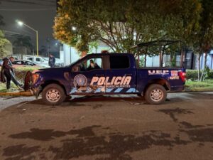 Finalmente, también impactó un auto Toyota Corolla, en color blanco y con placas de esta ciudad, que también se hallaba estacionado momentáneamente y el cual estaba asignado al área de Comunicación Social de la Secretaría de Seguridad Pública del Estado (SSPE), cuyo personal a cargo de él cubría el citado operativo en los bares.