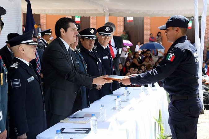 Con la representación del Comisionado Nacional de Seguridad, licenciado Renato Sales Heredia, Islas Bacilio felicitó a los egresados de la IV Generación 2015 a quienes dijo que estos elementos se distinguen por el estricto proceso de selección y la alta capacitación “ya que cada uno de ustedes cuenta con una certificación de la SEDENA y un certificado de competencias por la Secretaría del Trabajo y Previsión Social.