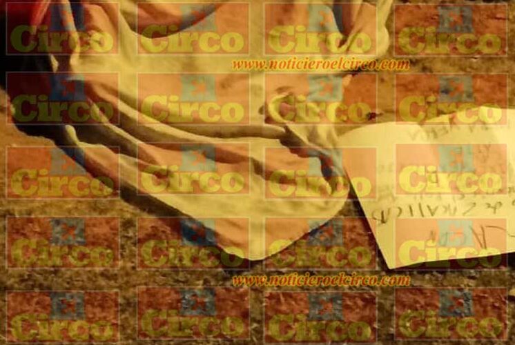 Junto a los pies fue encontrada la cartulina en color blanco con un narco-mensaje, que parte del escrito decía -“CALERA” y Todo El Estado de ZACATECAS Es Territorio C.D.N Tumbense el Rollo Todo AQUEL QUE cobre CUOTAS, Scuestrando y VEnda Cristal ES ENEMIGO DIREKTO DEL ESTADO DE ZACATECAS TERRITORIO DEL ATTE. C.D.N”-.