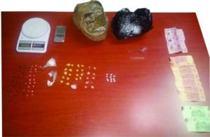 En ella descubrieron un paquete confeccionado con cinta canela que contenía 750 gramos de marihuana; una bolsa de plástico con 55 envoltorios de cocaína; 19 “cebollitas” de “crystal”; dos básculas grameras; 16 pipas de vidrio; 7 tubos de vidrio, y 24 bolsas de plástico.