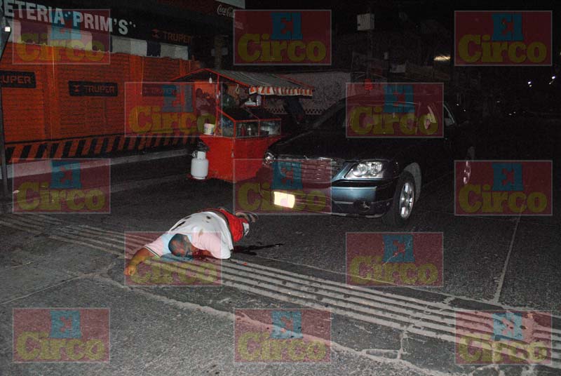 El narcomenudista, que vestía playera blanca, short rojo y sandalias, descendió de su camioneta para comprar comida, por lo que del carro bajó un sujeto con playera blanca y cachucha roja y comenzó a dispararle en varias ocasiones.