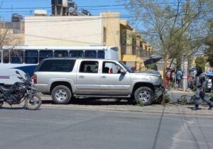 El chofer del vehículo perdió el control del volante al ser alcanzado por los proyectiles, por lo que se subió al camellón central y chocó contra un árbol.